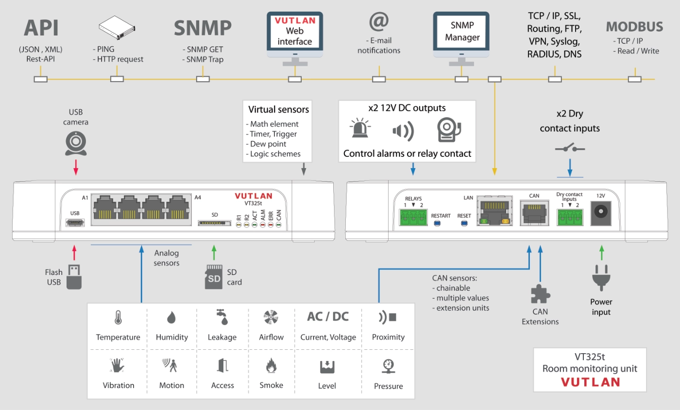All Vutlan monitoring devices have a built-in multilingual web interface for monitoring and managing the device.