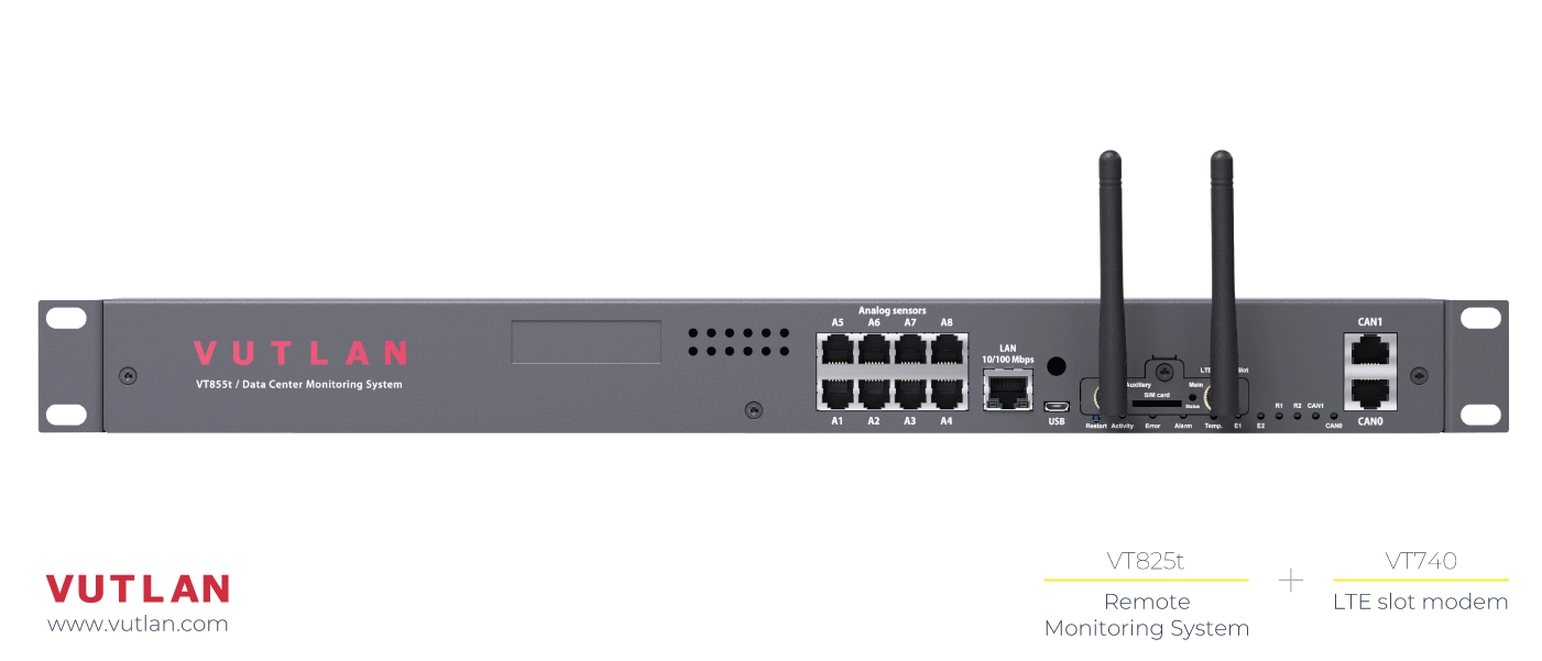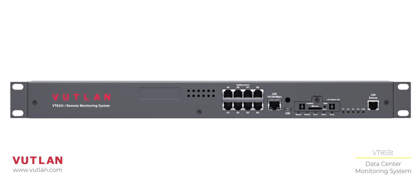 The VT825 / Data Center Monitoring Unit can be used for remote environmental monitoring in data centers: