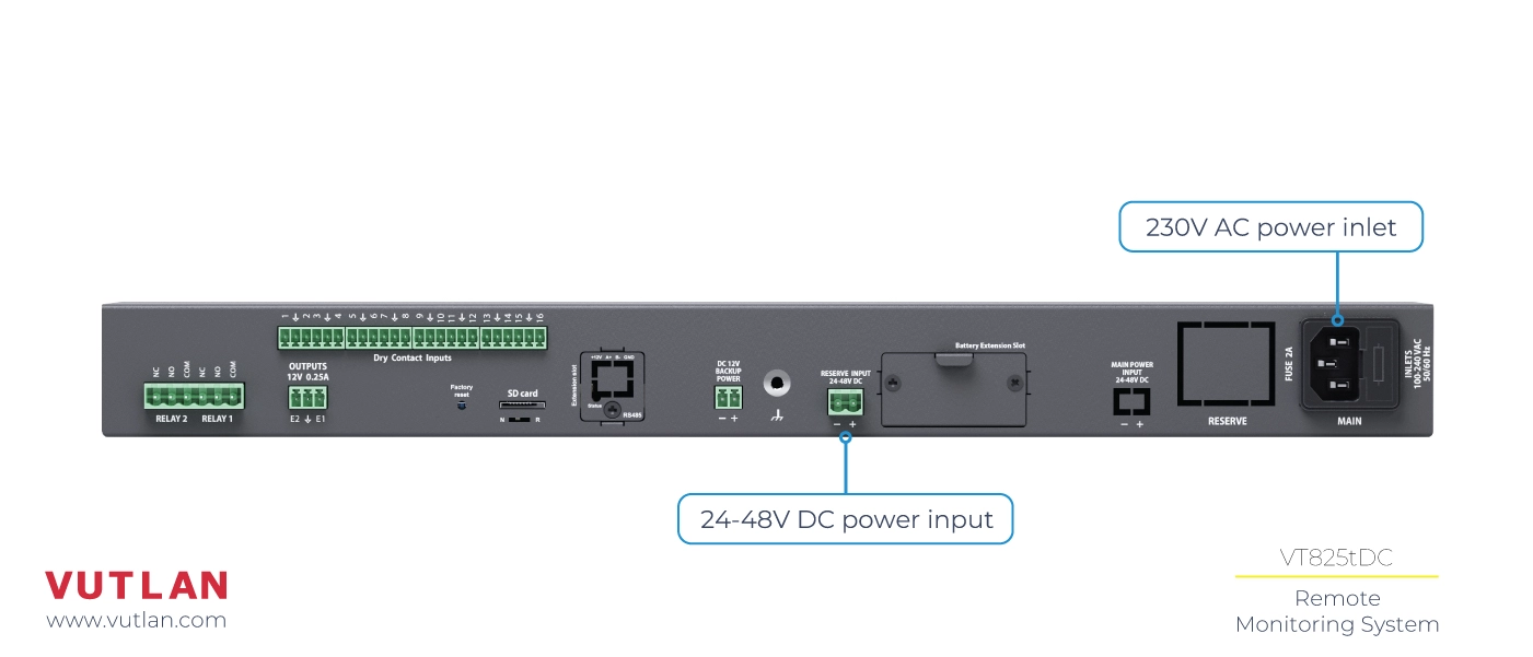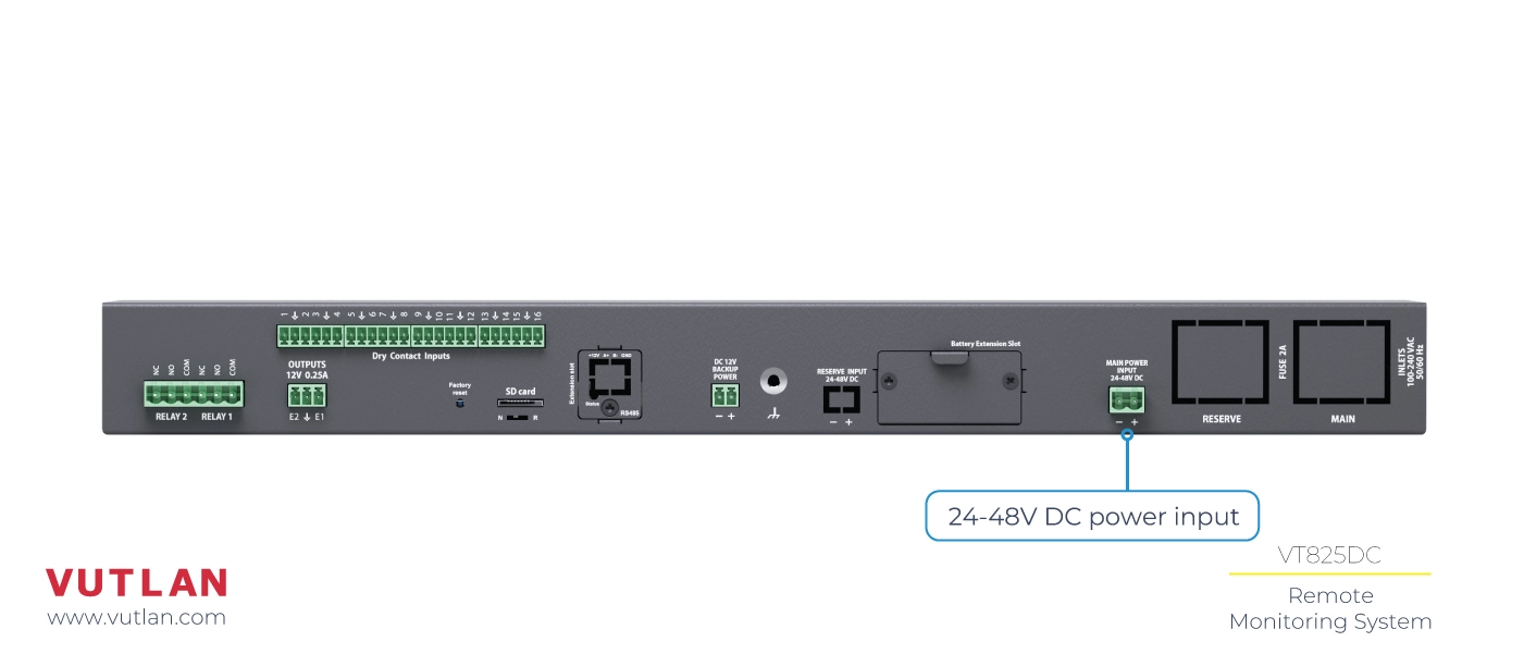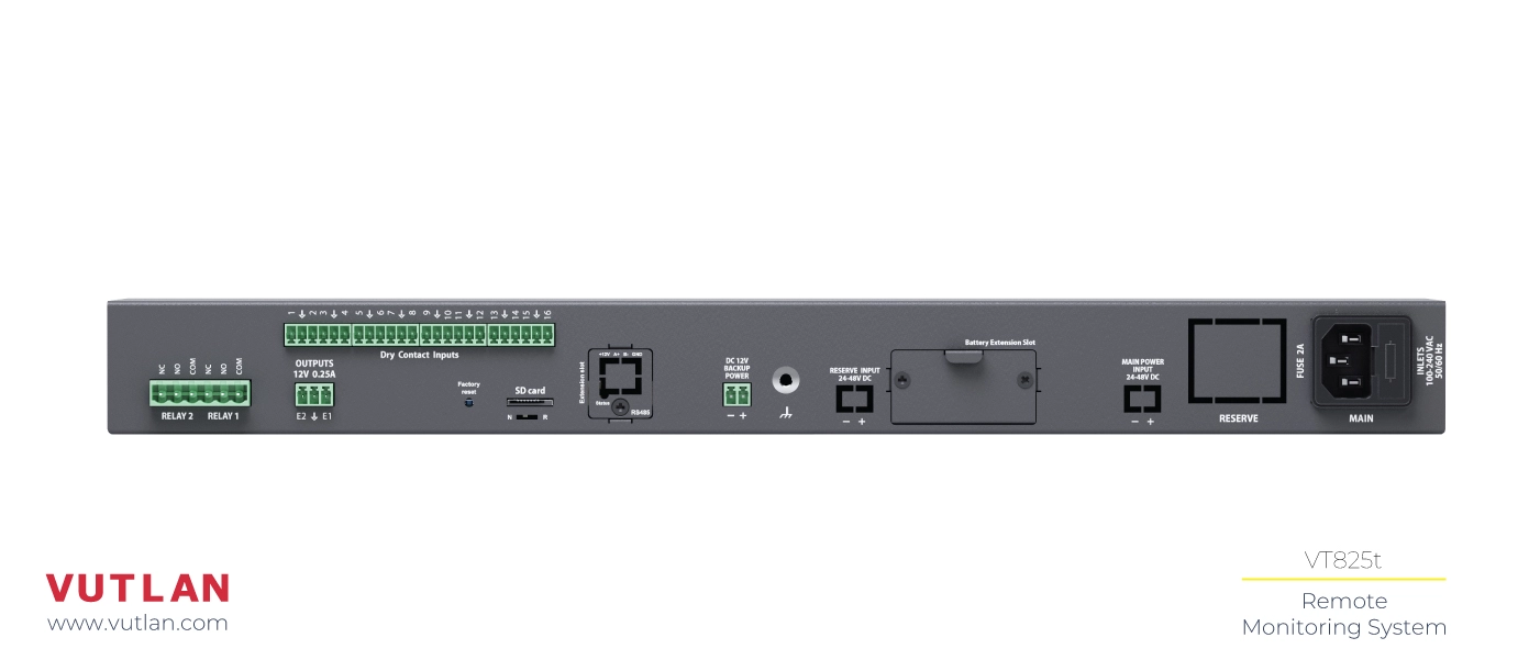 The VT440 / Dry Contacts extension unit increases the number of Dry contacts that can be connected to any Vutlan monitoring device.