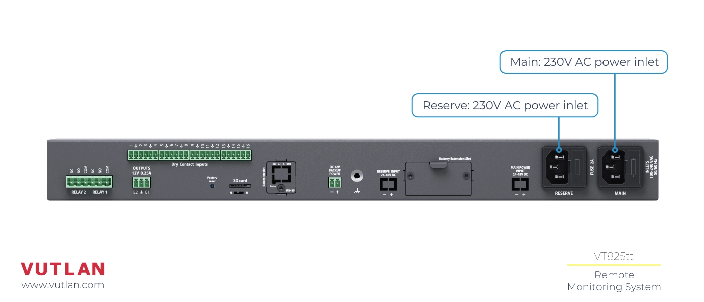 VT825 unit provides power backup capability.