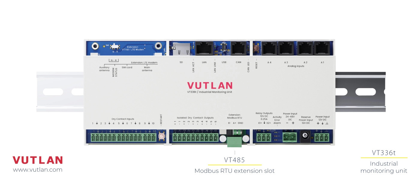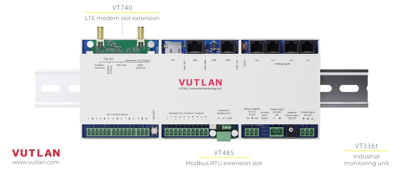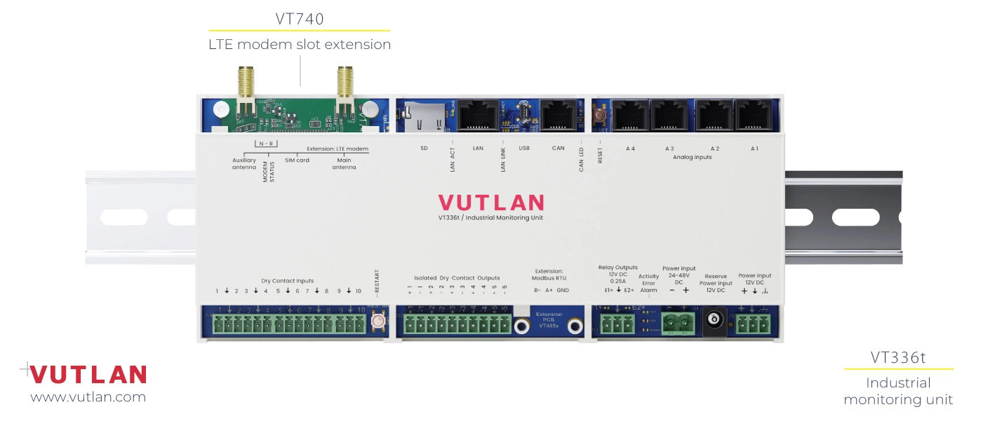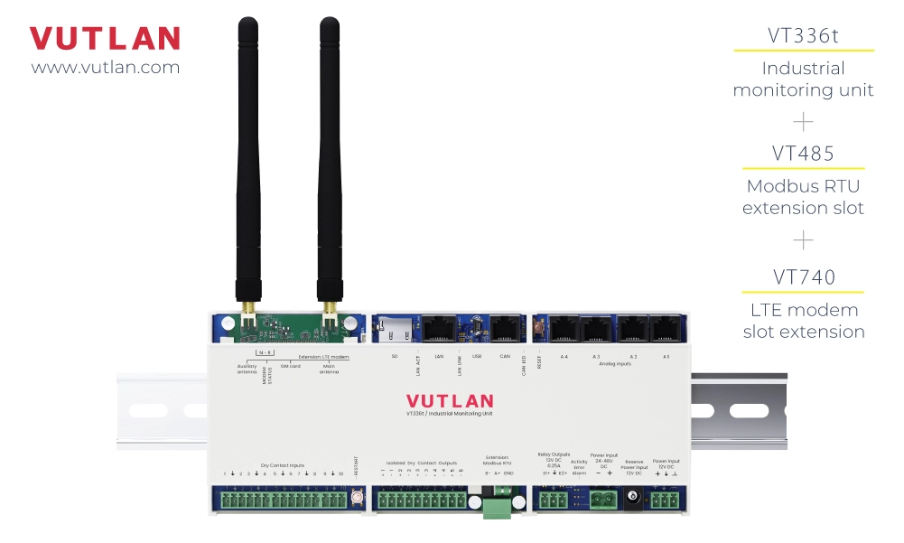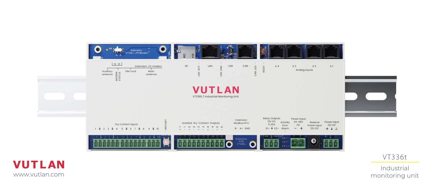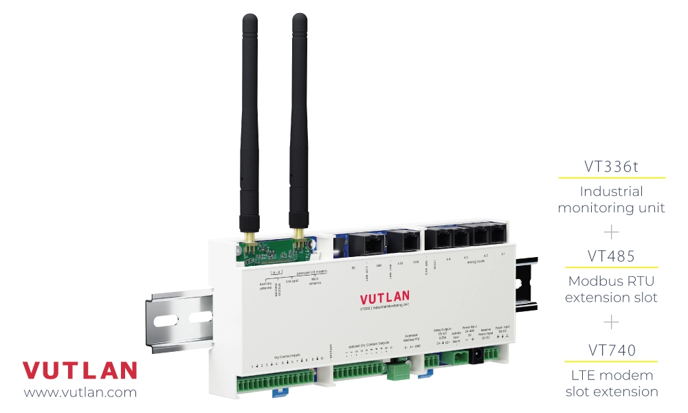 - Remote Site Monitoring: The VT336t can monitor equipment status and environmental factors in remote locations such as oil rigs or telecommunications hubs.
