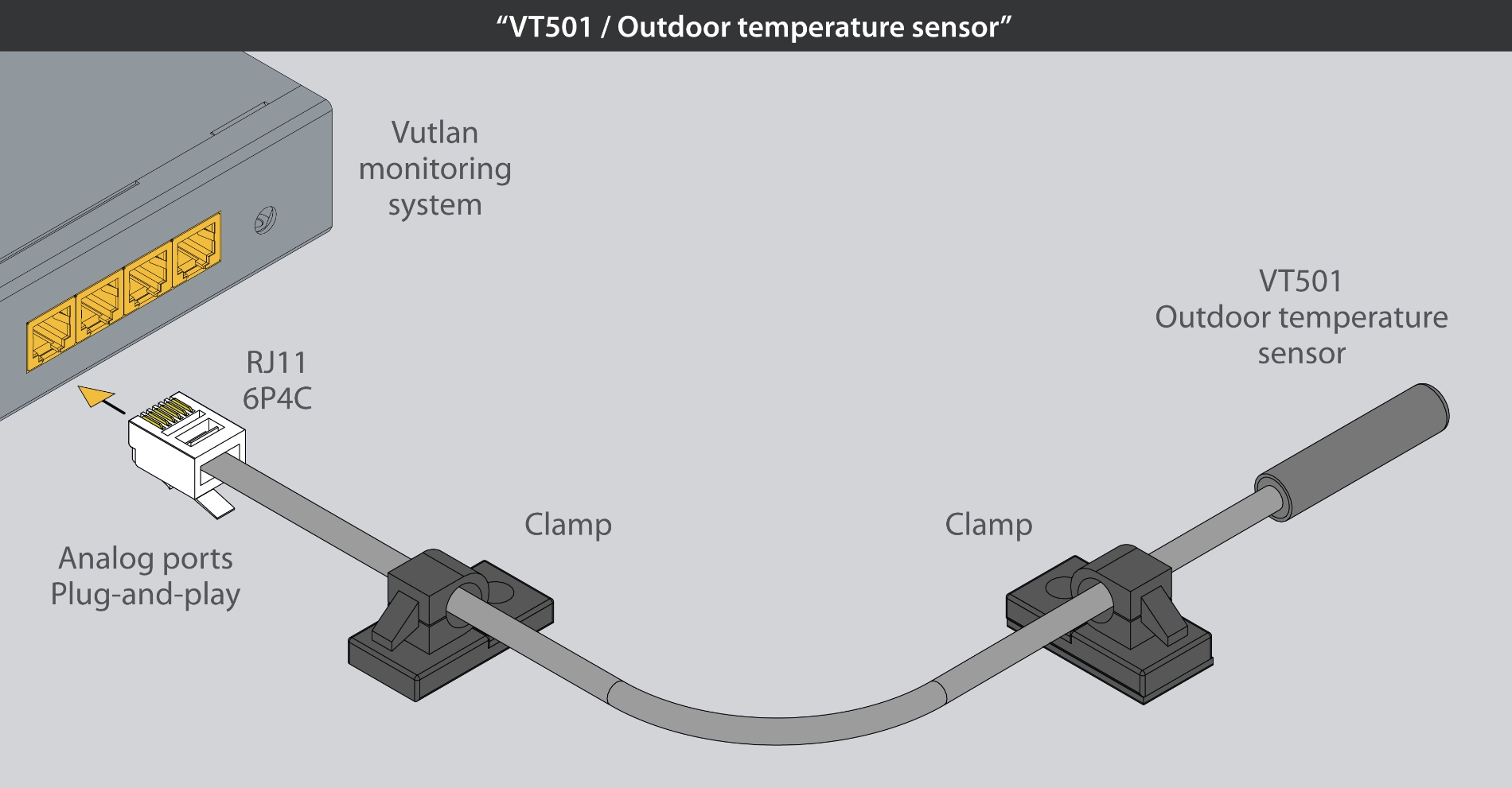 This plug-and-play sensor easily connects to any analog port of Vutlan monitoring devices.