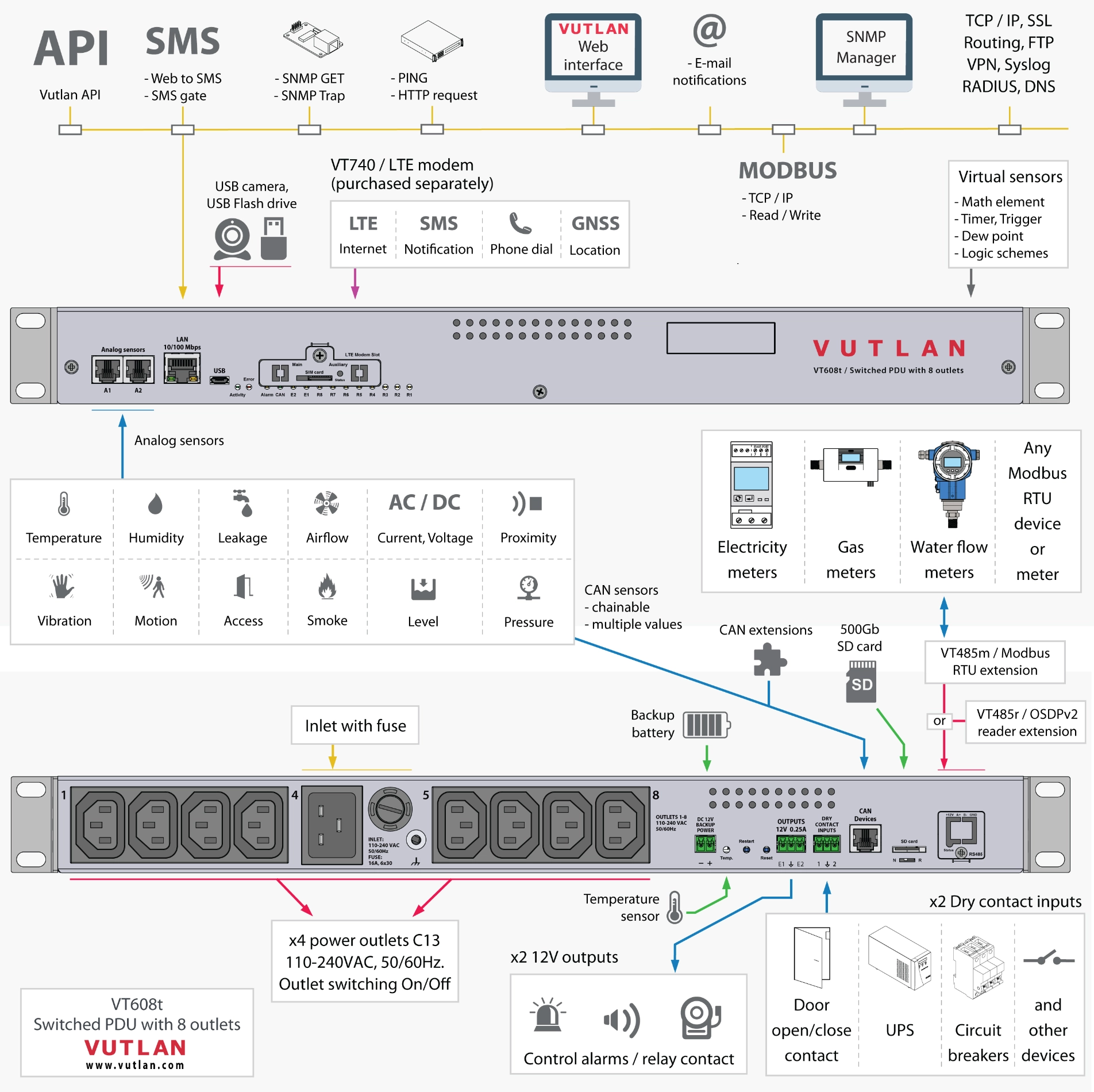 - Data Center Management: The VT604t enables efficient power management of servers and network equipment.