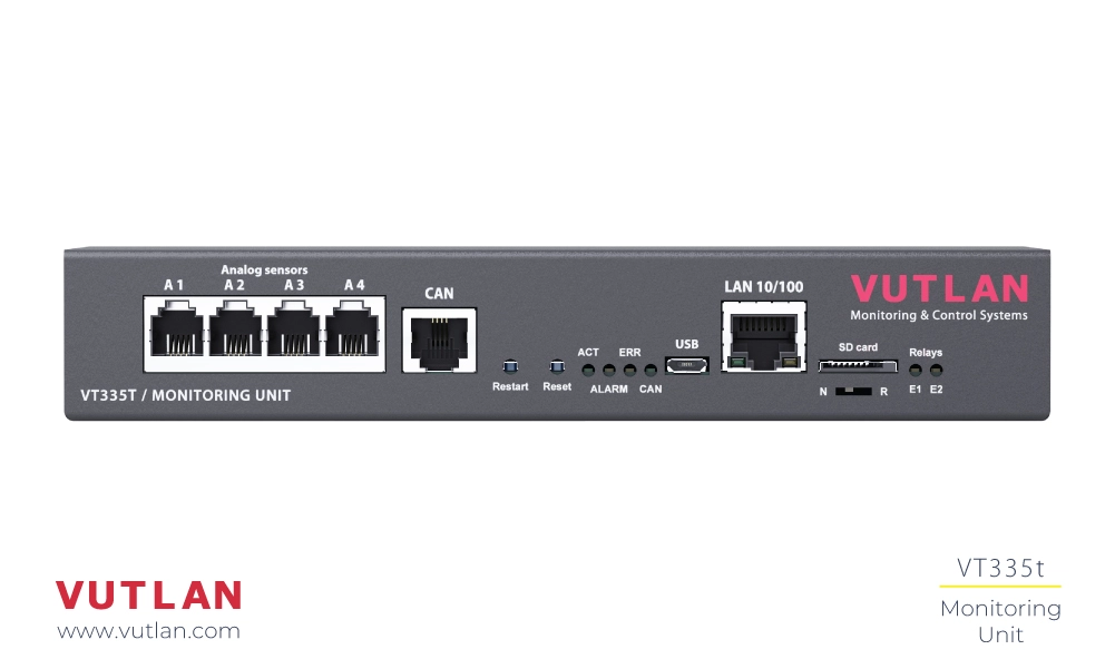 Each VT408 extension unit connected to the Vutlan monitoring device via the CAN bus adds the ability to connect 8 analog sensors to the system.