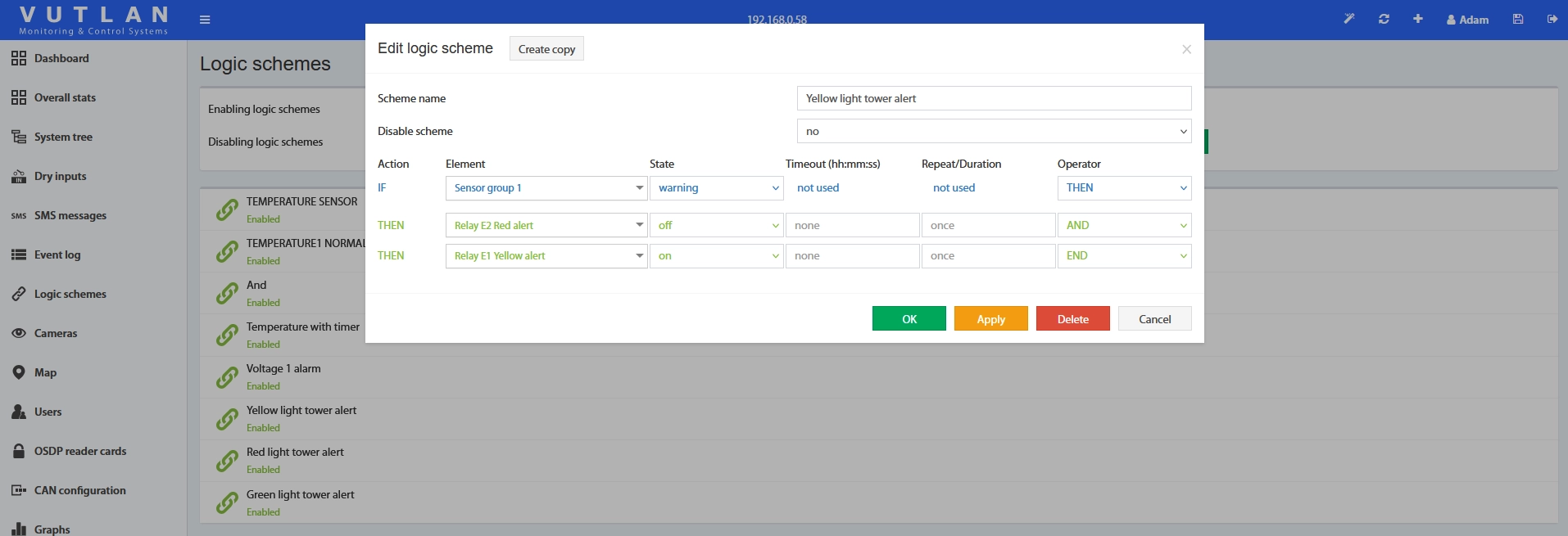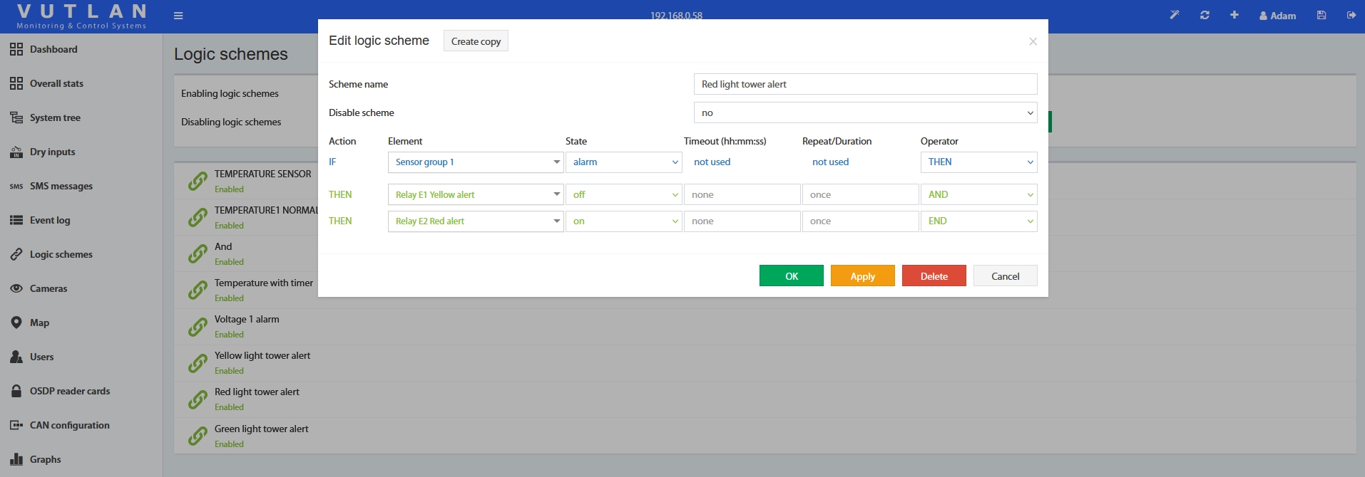- IF Sensor Group status is Alarm >> Red light
