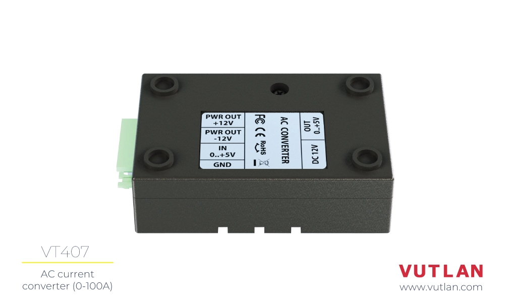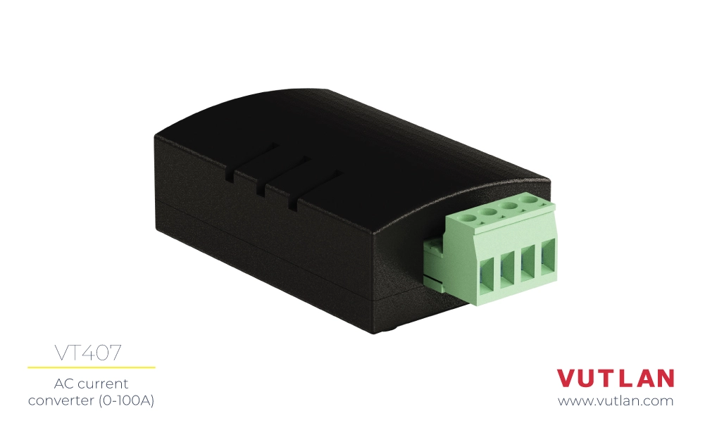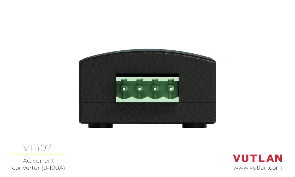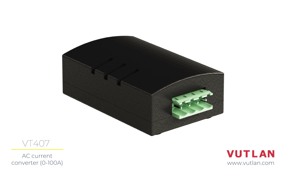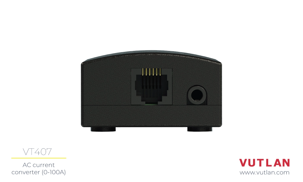 The VT407 / AC current transceiver transmits measured current data from the HAT-100Q1 AC transducer to the Vutlan monitoring device.