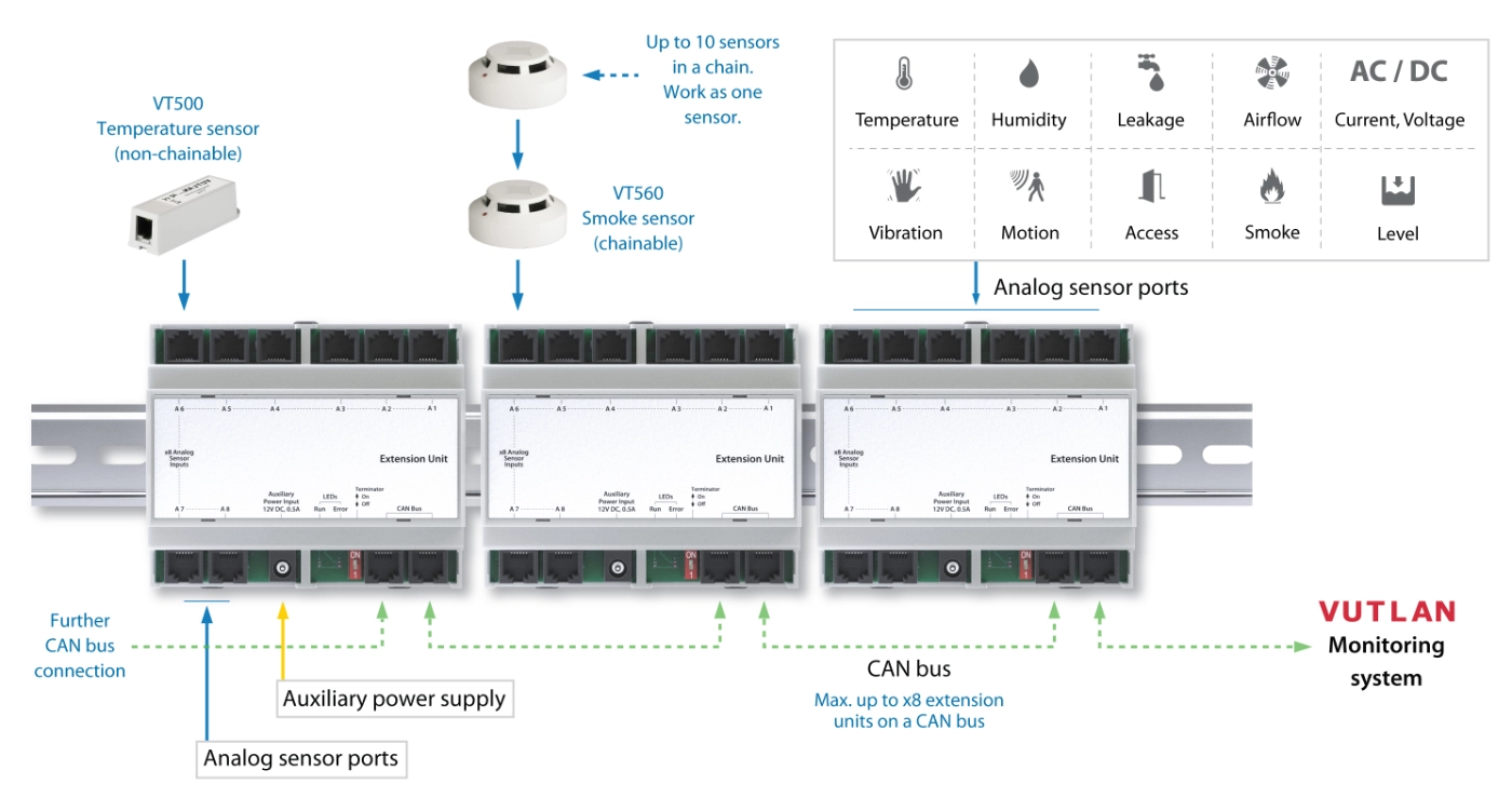 To read data from the CAN sensors, you need a Vutlan monitoring device with one or two CAN ports.