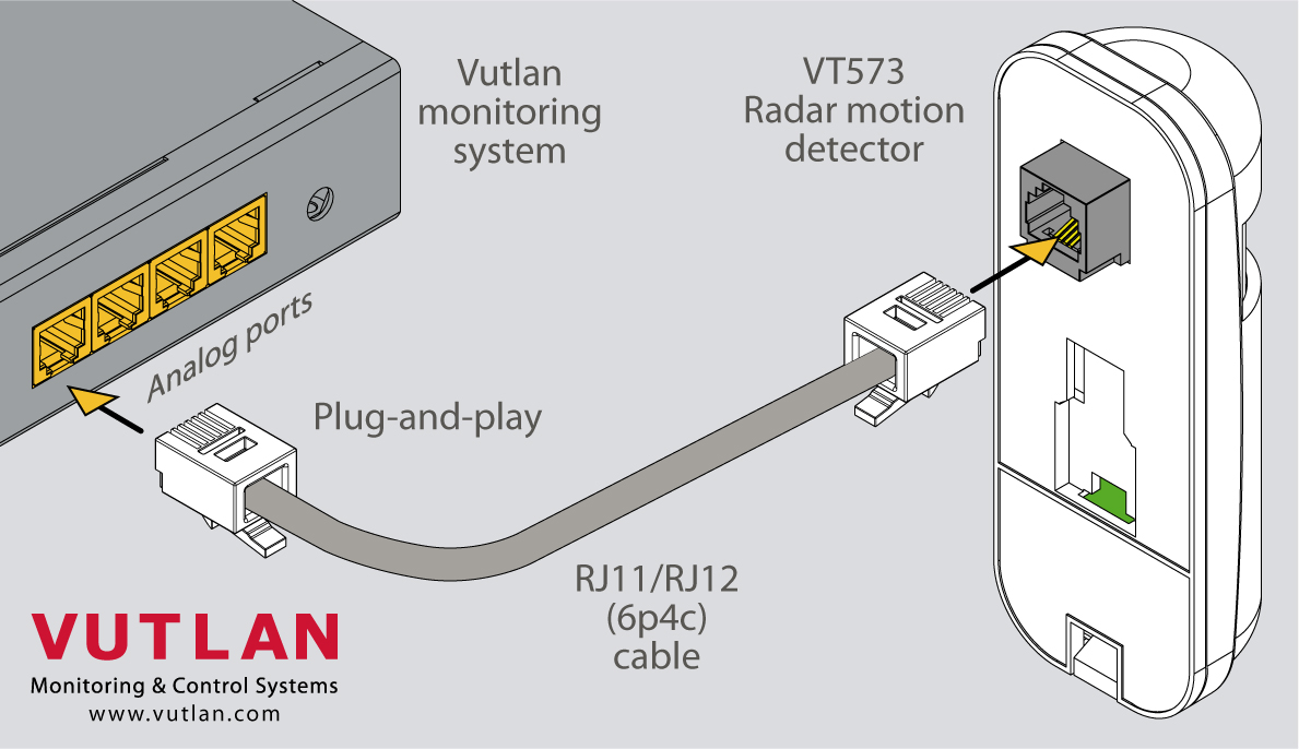 This plug-and-play sensor easily connects to any analog port of Vutlan monitoring devices.