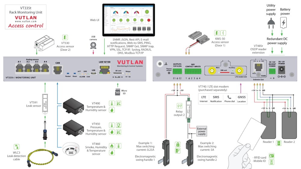 It can be used with VT335t, VT336t, VT825t, and VT855t monitoring systems. VT485r can be inserted inside the monitoring unit while the unit is in operation.