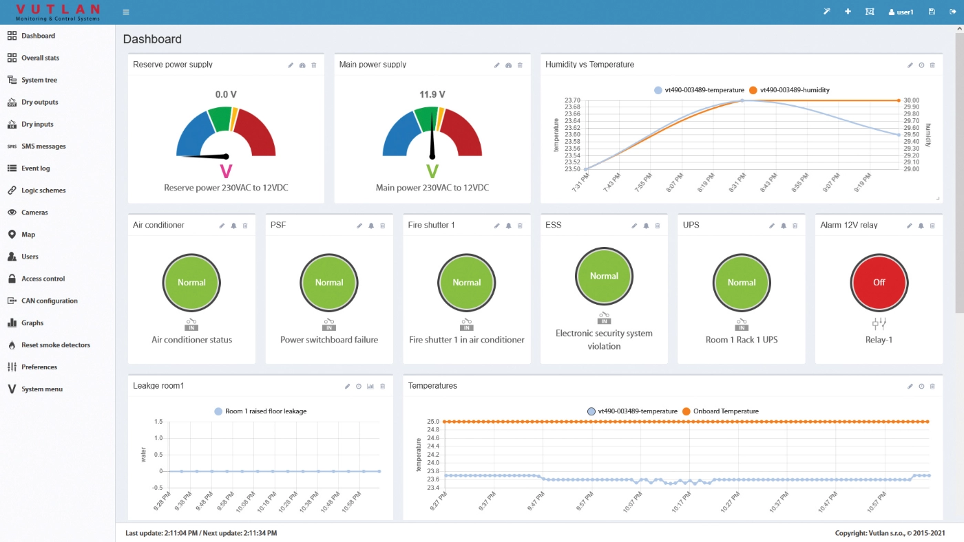 Multilingual Web Interface with setup wizard, with time setup, built-In vector map with floors, with Logic, Graph, Logs, Outlets and Dry contact tabs.
